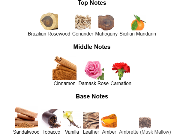 에고이스트는 코리앤더, 로즈우드, 만다린 오렌지의 따뜻하고 스파이시한 노트로 시작합니다. 중간에는 로즈, 시나몬, 클카네이션이 조화를 이루며 복합적이고 풍부한 플로럴-스파이시한 향을 선사합니다. 베이스에는 샌들우드, 바닐라, 앰버가 더해져 깊고 따뜻한 잔향을 남깁니다. 시간이 지남에 따라 고급스럽고 세련된 느낌을 줍니다.